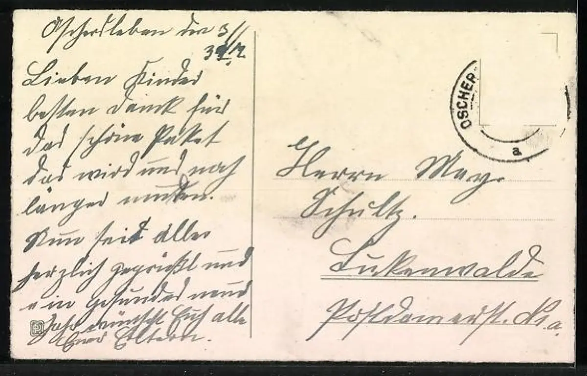 alte Ansichtskarte, gelaufen, Briefmarke entfernt, guter Zustand