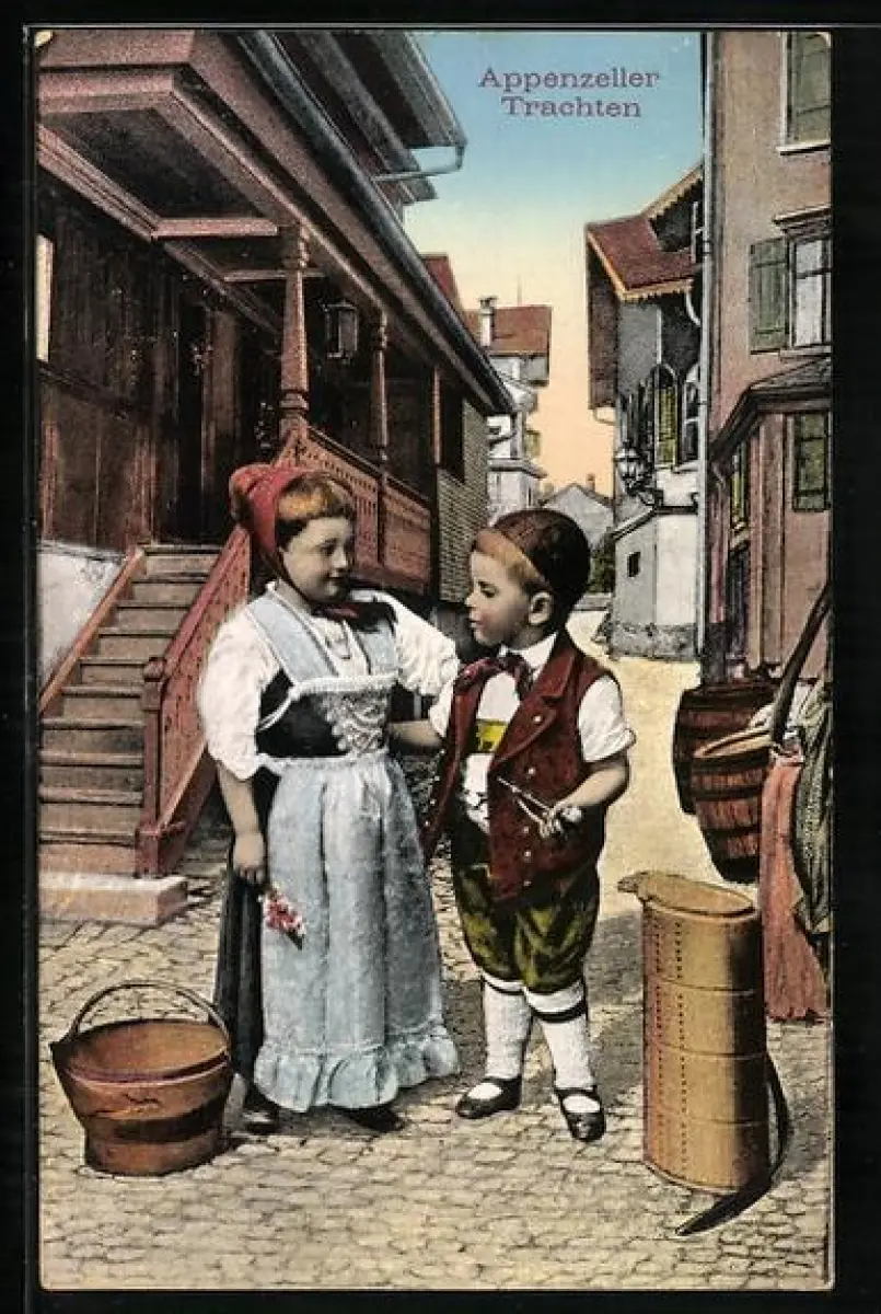 AK Kinder in Appenzeller Trachten auf einem Dorfplatz