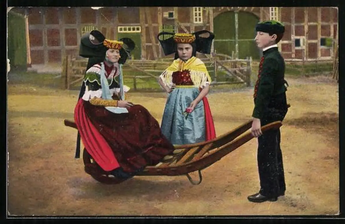AK Kinder mit Karren in Schaumburg-Lippischer Landestracht