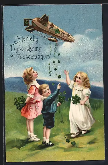 AK Kinder zeigen auf ein Zeppelin-Luftschiff