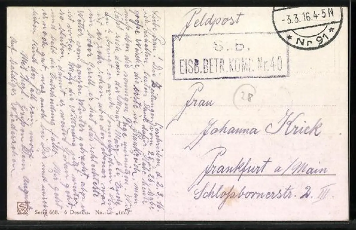 alte Ansichtskarte, gelaufen 1916, Bugspur diag. unten li., Stempelspur, guter Zustand