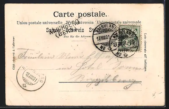 gelaufen 1901, Eckknicke re. unten, guter Zustand