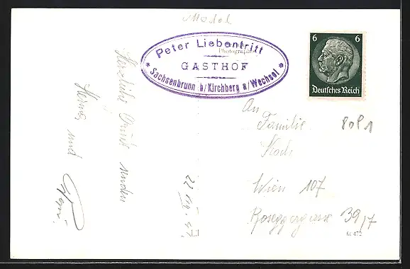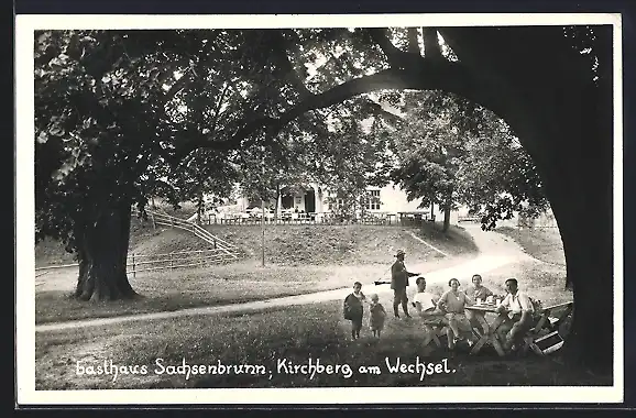 AK Kirchberg am Wechsel, Gasthaus Sachsenbrunn, Kleine Gesellschaft mit Jäger