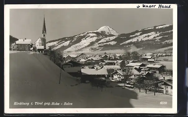 AK Kirchberg i. T., Teilansicht gegen Hohe Salve im Winter