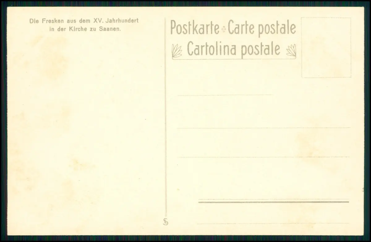 AK - Kirche zu Saanen Schweiz - kolorierte Postkarte - Fresken 15 Jh. Alpenmotiv