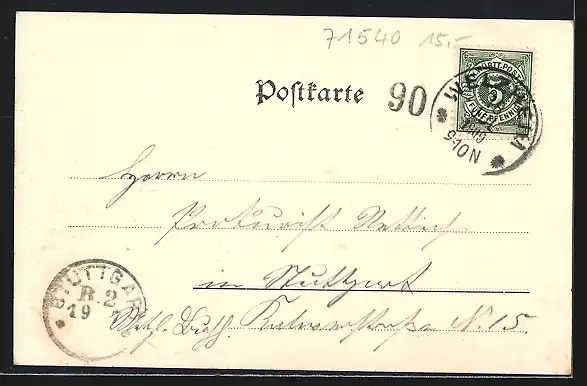 alte Ansichtskarte, gelaufen 1900, guter Zustand