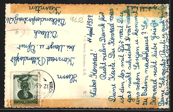 alte Ansichtskarte, gelaufen 1954, rückseitig Klebe- und Papierreste, guter Zustand
