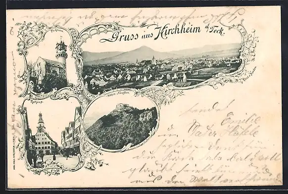 AK Kirchheim u. Teck, Teckturm, Rathaus, Hohen Neuffen