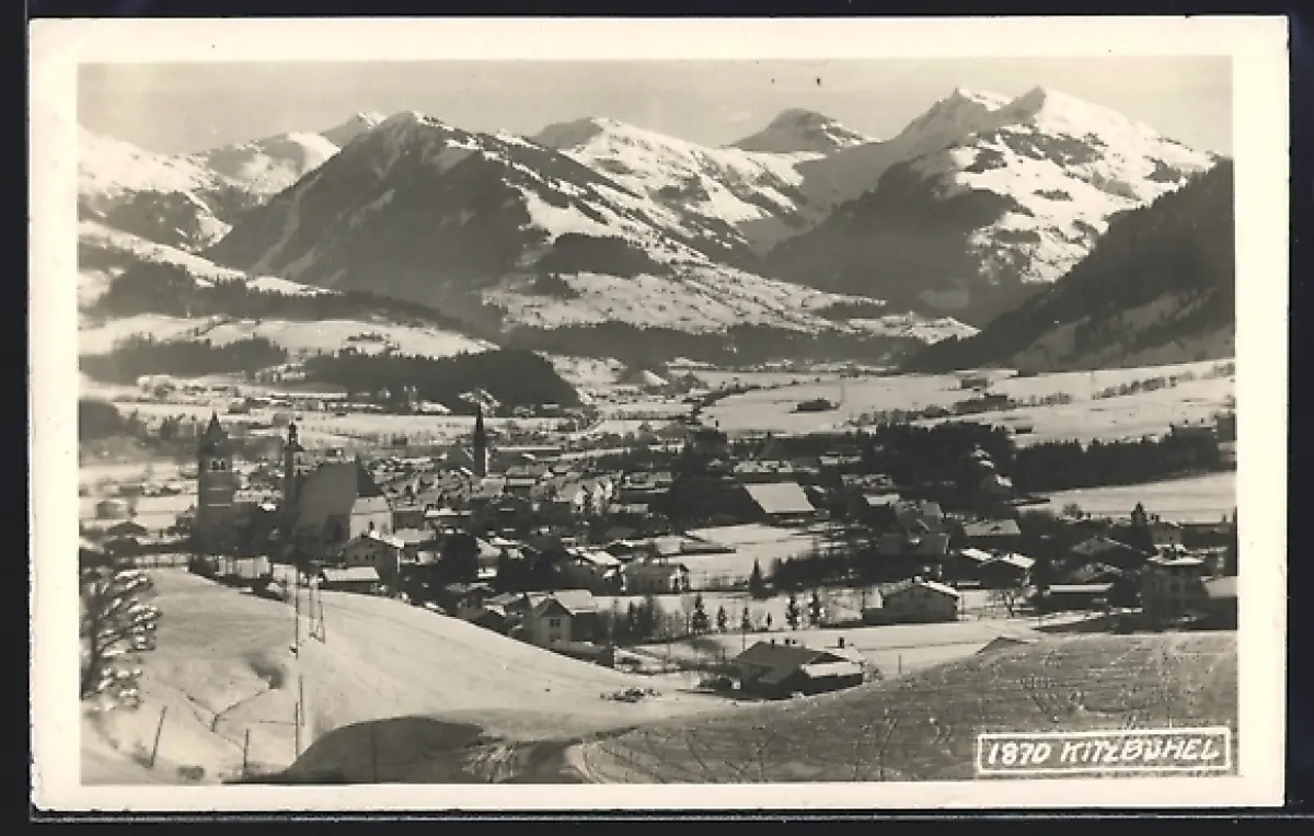 AK Kitzbühel, Totalansicht im Winter aus der Vogelschau