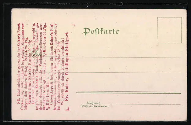 Personenbezogene Daten auf der Rückseite der Karte wurden durch blauen Textmarker unkenntlich gemacht. Die blauen Stellen sind auf die Vorderseite durchgeweicht und wirken sich negativ auf das Postkartenfoto aus