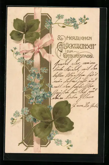 AK Kleeblätter mit Schleife zum Geburtstag