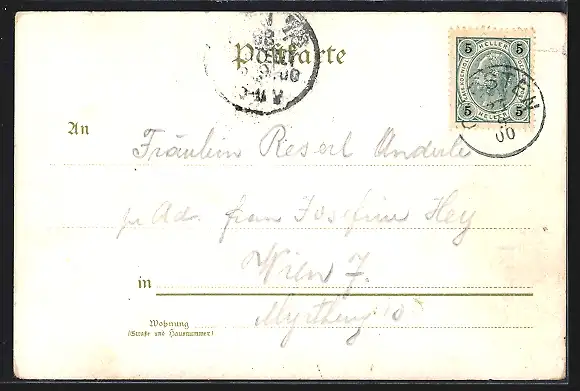 alte Ansichtskarte, gelaufen 1900, guter Zustand