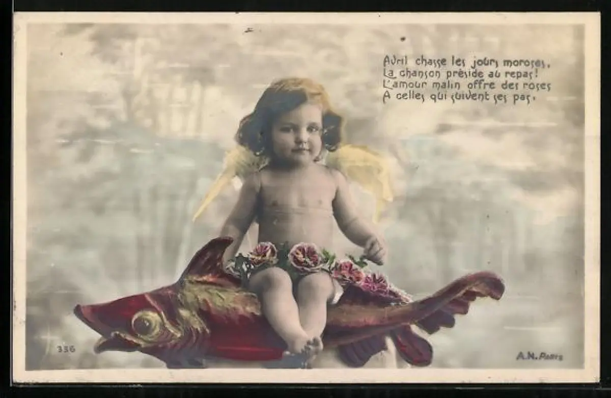 AK Kleiner Engel sitzt auf einem Fisch