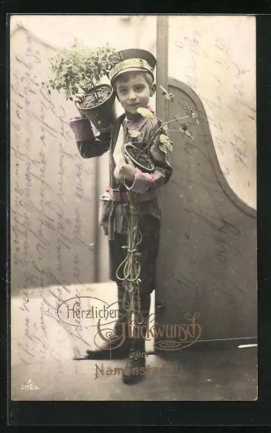 AK Kleiner Page mit Blumentöpfen