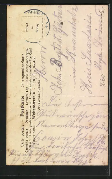 alte Ansichtskarte, gelaufen, Briefmarke entfernt, guter Zustand