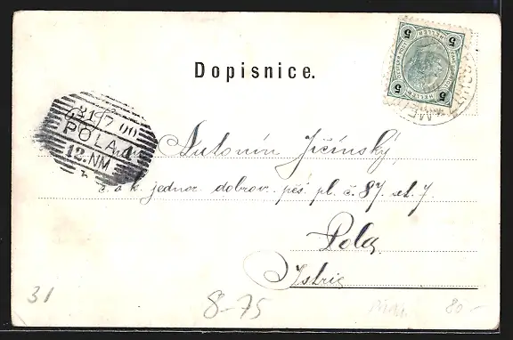 gelaufen 1900, Eckknick re. unten, guter Zustand