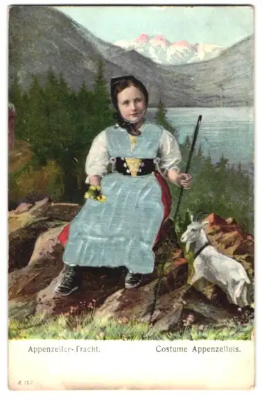 AK Kleines Mädchen mit Zicklein in Appenzeller Tracht