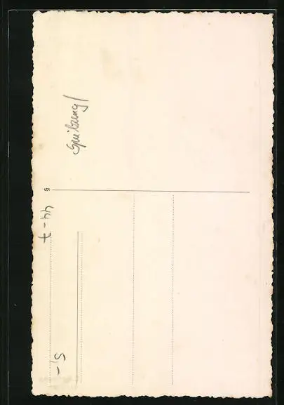 Personenbezogene Daten auf der Rückseite der Karte wurden durch blauen Textmarker unkenntlich gemacht. Die blauen Stellen sind auf die Vorderseite durchgeweicht und wirken sich negativ auf das Postkartenfoto aus
