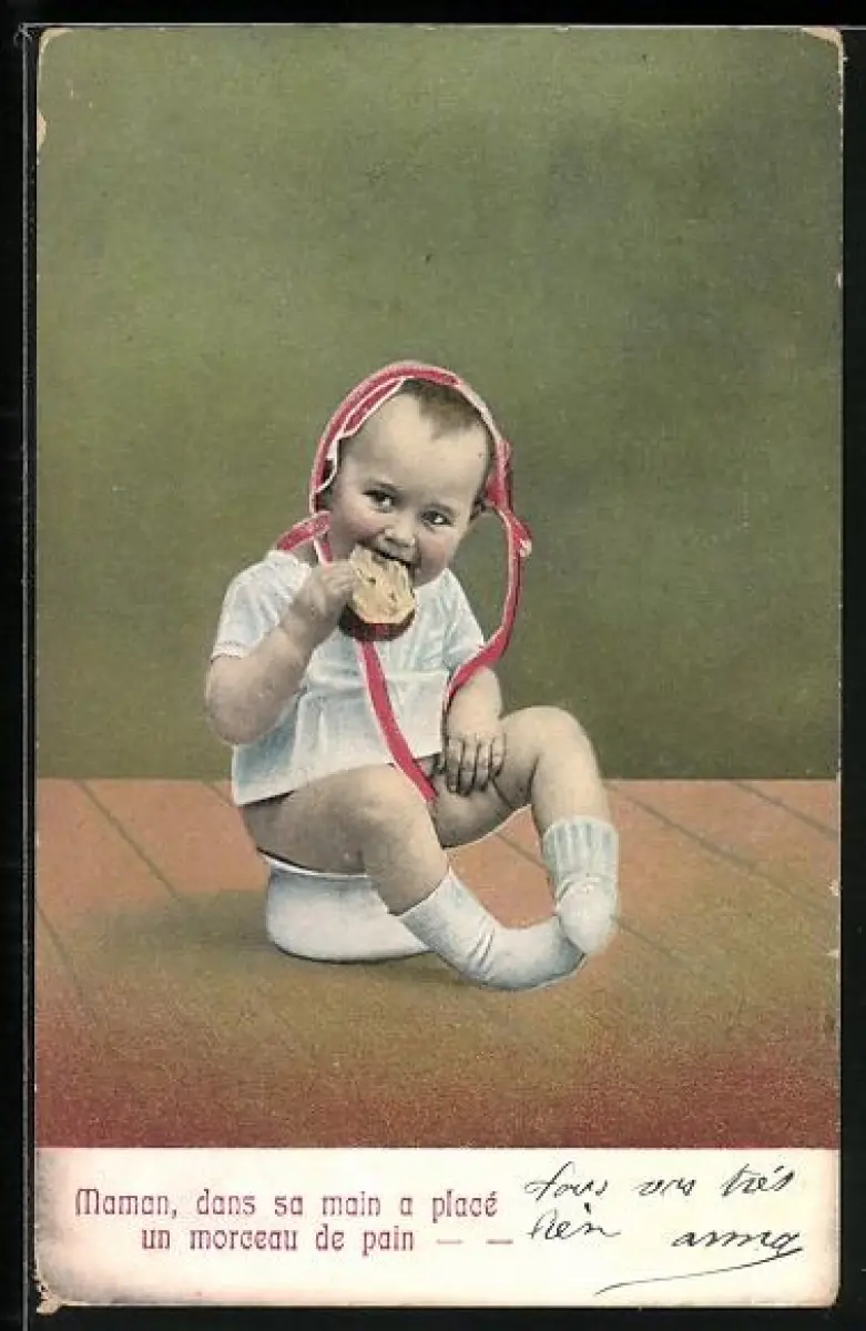 AK Kleinkind auf dem Töpfchen isst ein Butterbrot