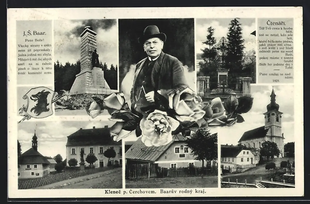 AK Klenci Pod Cherchovem, Schriftsteller Jindrich Simon Baar, Kirche und Gasthaus