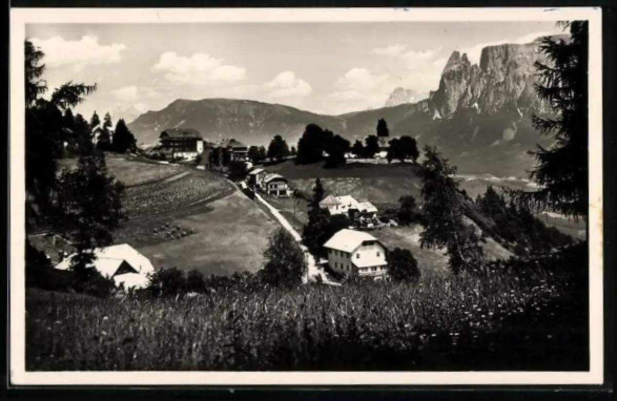 AK Klobenstein am Ritten, Ortsansicht gegen Schlern