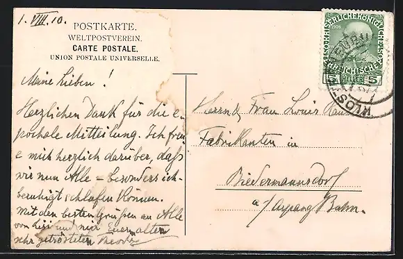 alte Ansichtskarte, gelaufen 1910, Eckknick li. oben, guter Zustand