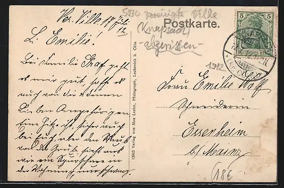 alte Ansichtskarte, gelaufen 1912, guter Zustand