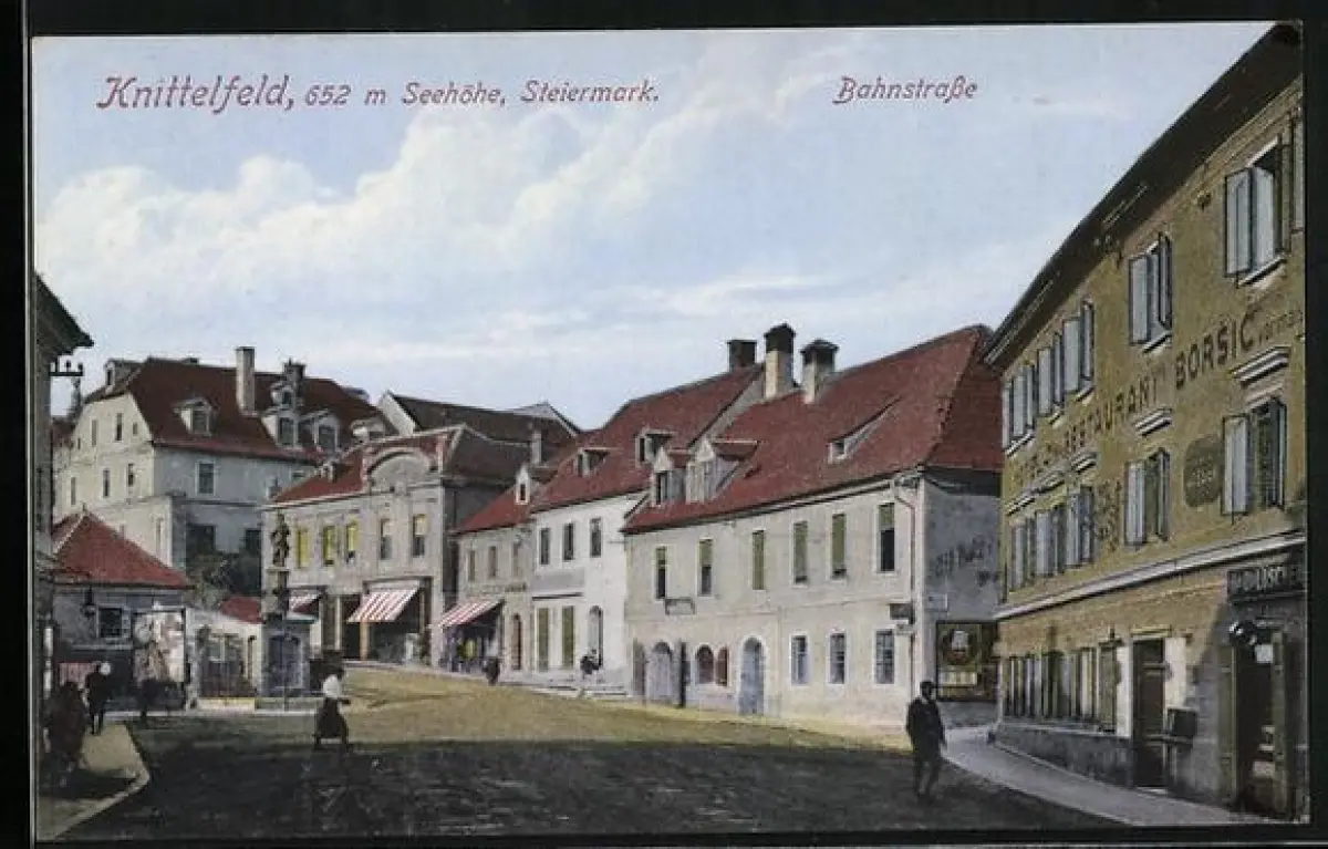 AK Knittelfeld, Bahnstrasse mit Passanten