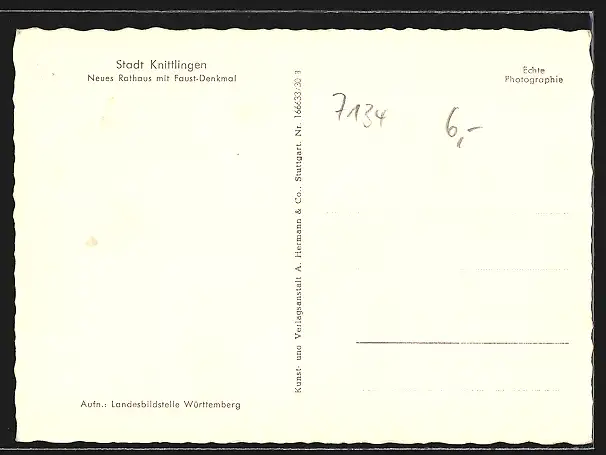 AK Knittlingen, Neues Rathaus mit Faust-Denkmal