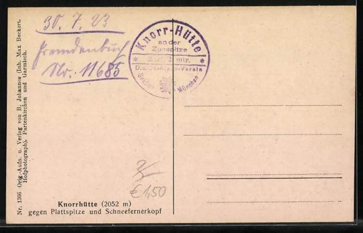 AK Knorrhütte, Amsicht gegen Plattspitze u. Schneefernerkopf