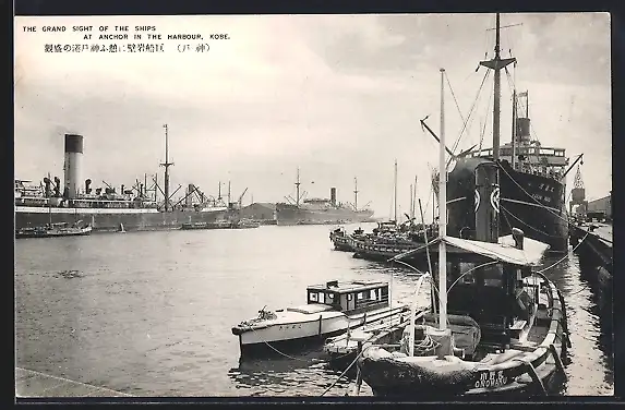 AK Kobe, the grand sight of the ships at anchor in the harbour
