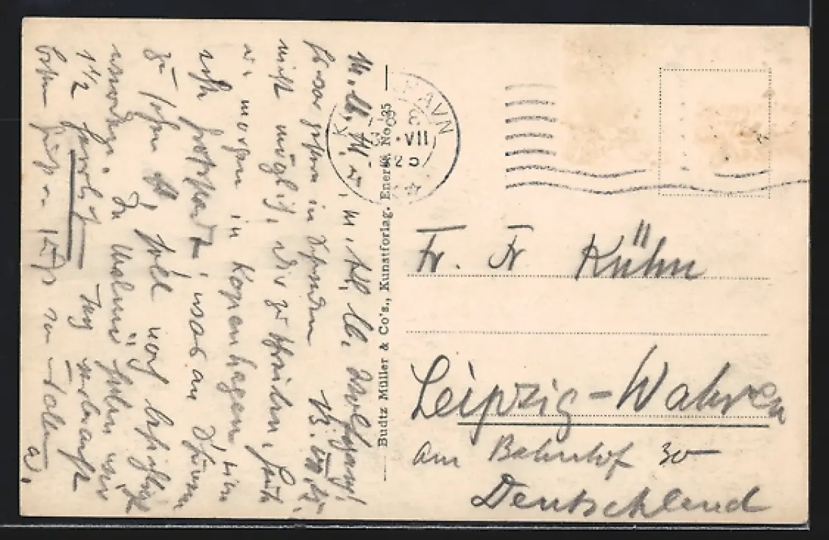 alte Ansichtskarte, gelaufen, Briefmarke entfernt, Stempelspur, guter Zustand
