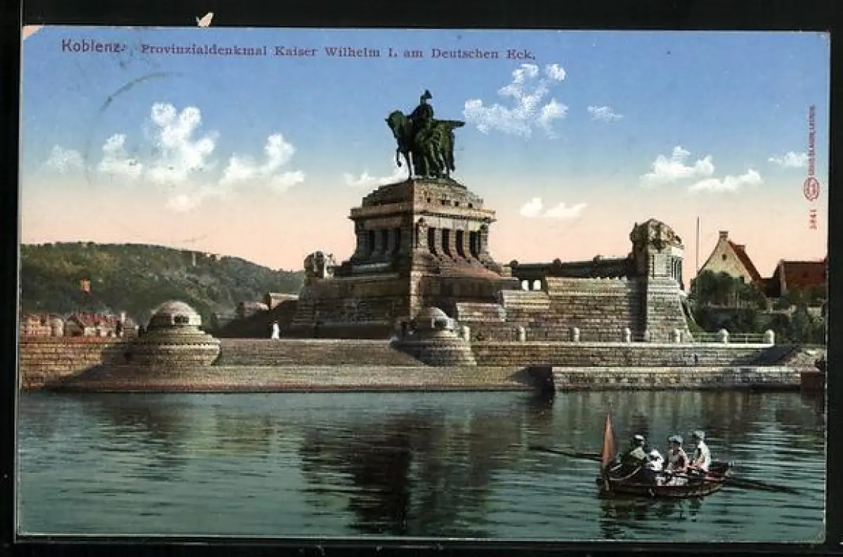 AK Koblenz, Kaiser-Wilhelm-Provinzialdenkmal am Deutschen Eck