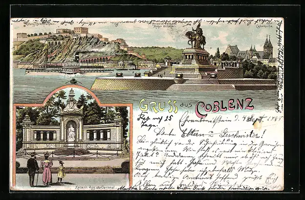 AK Koblenz, Kaiserin Augusta-Denkmal, Festung Ehrenbreitstsein und Provinzial-Denkmal Kaiser Wilhelm I.
