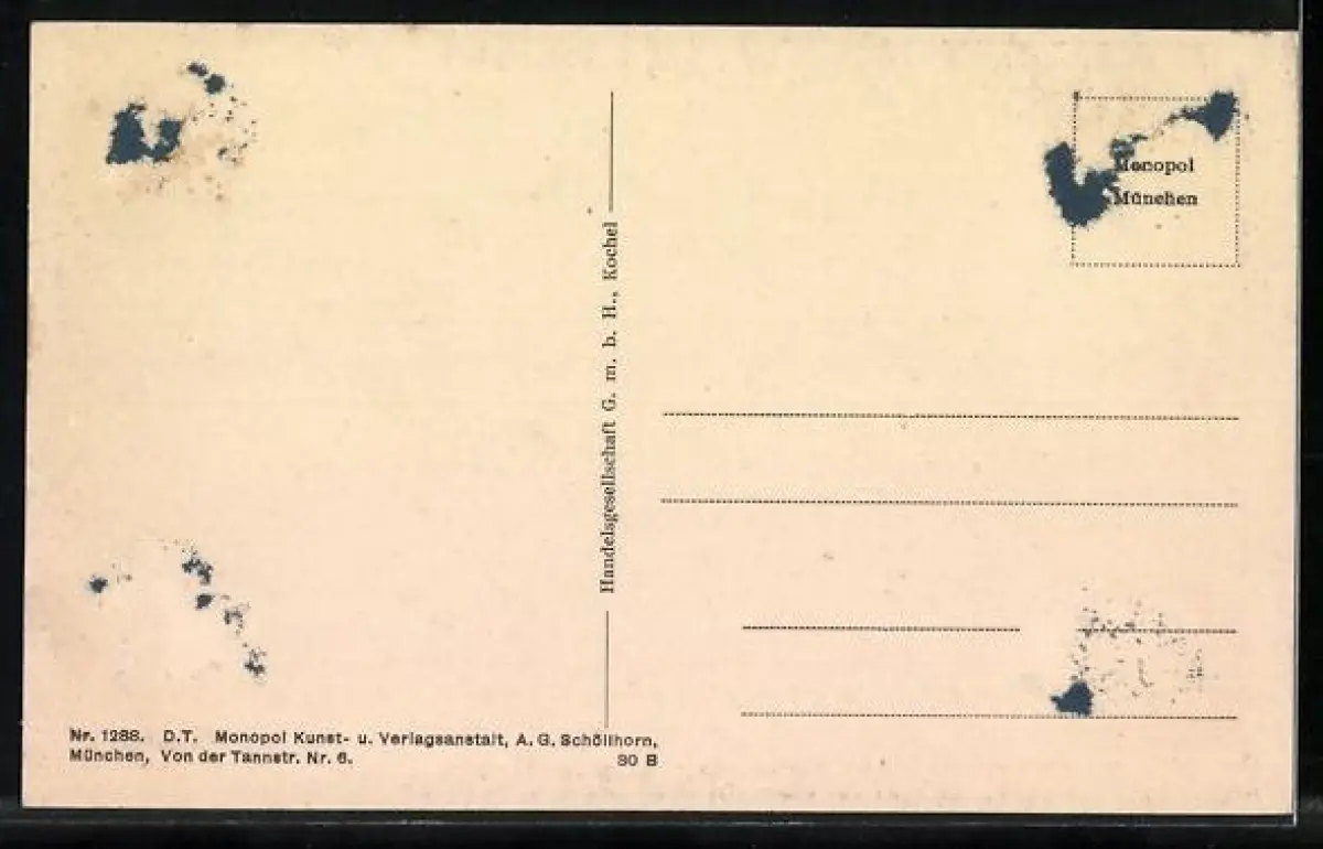 alte Ansichtskarte, ungelaufen, rückseitig Klebe- und Papierreste, rückseitig Oberflächenschaden, guter Zustand
