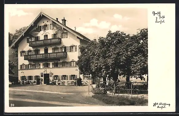 AK Kochel, Menschen vor dem Gasthof zur Post