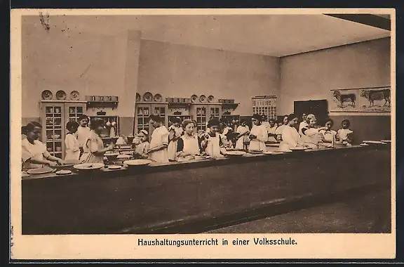 AK Köln, Ausstellung 1913, Haushaltungsunterricht in einer Volksschule