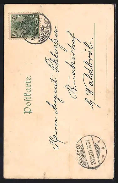 alte Ansichtskarte, gelaufen 1900, guter Zustand