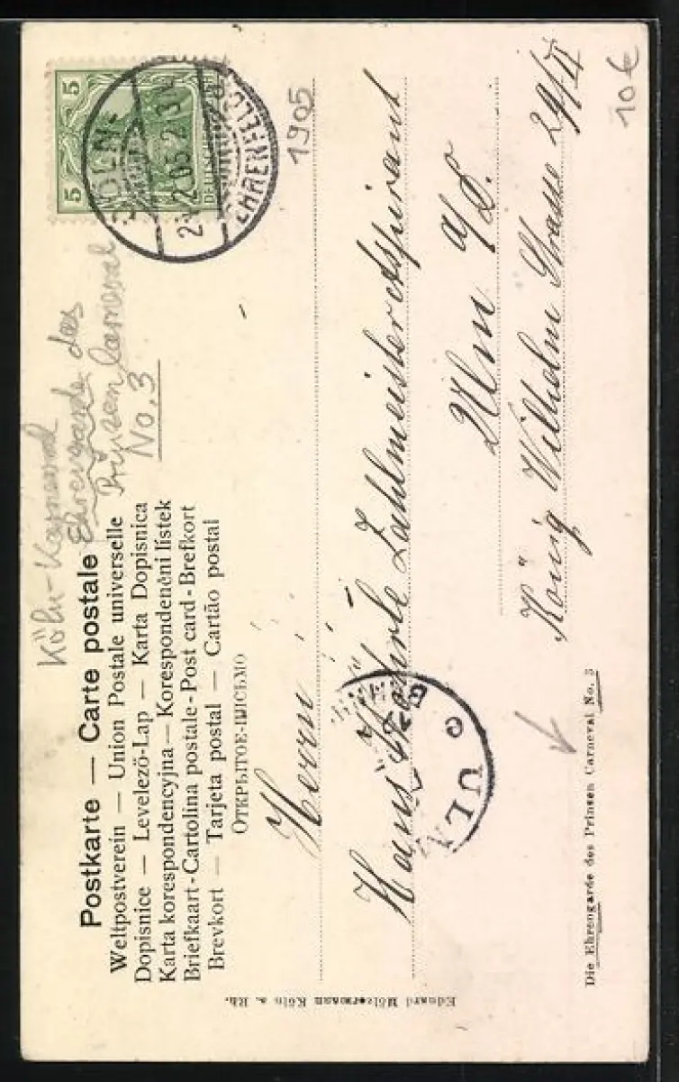 AK Köln, Ehrengarde des Prinzen Carneval No. 3, Kölsche Funken