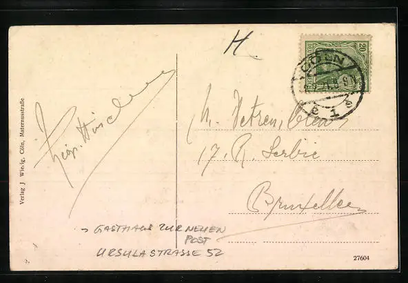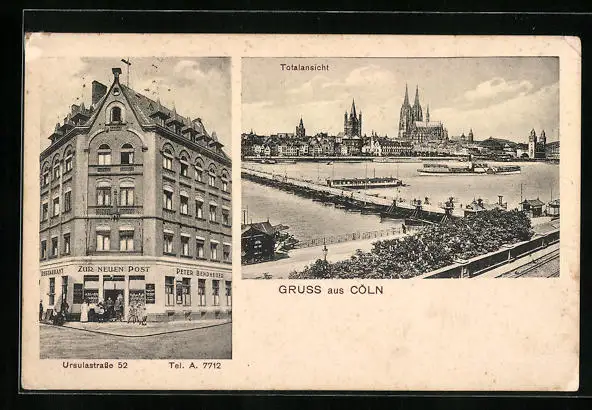 AK Köln, Gasthaus zur neuen Post, Ursulastrasse 52, Totalansicht