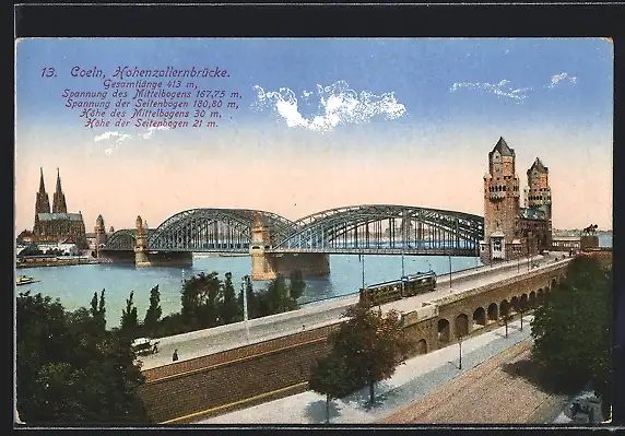 AK Köln, Hohenzollernbrücke mit Strassenbahn