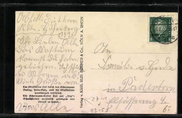 Ein Angebot in Ansichtskarten Musik: Liedkarten - 859 weitere Angebote in dieser Kategorie