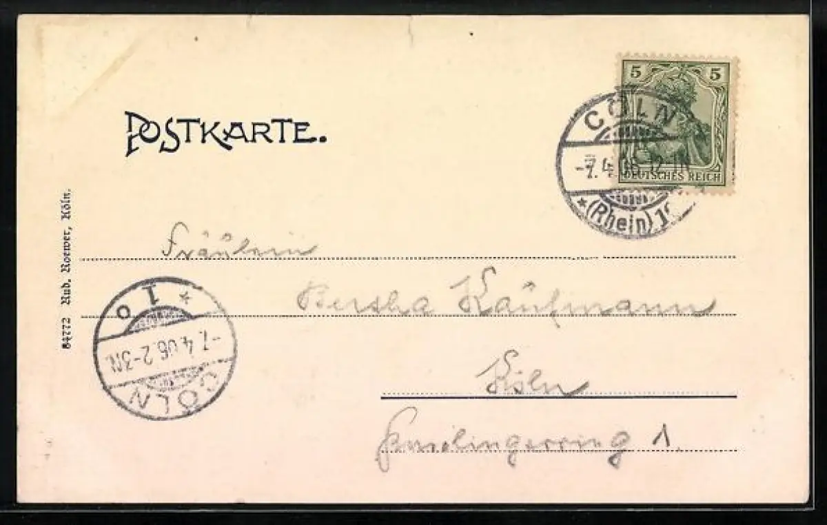 alte Ansichtskarte, gelaufen 1906, Einrisse oben mittig