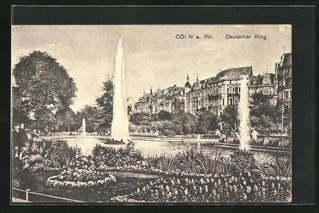 AK Köln-Neustadt, Deutscher Ring mit Springbrunnen