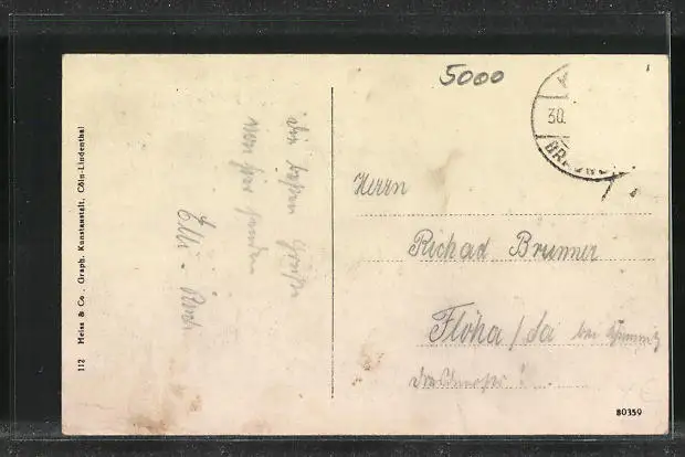 alte Ansichtskarte, gelaufen, Briefmarke entfernt, guter Zustand