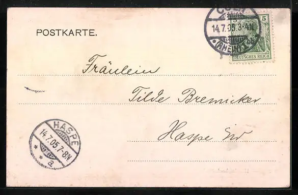 alte Ansichtskarte, gelaufen 1905, guter Zustand