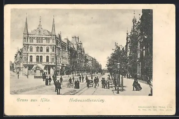 AK Köln-Neustadt, Hohenzollernring mit Gabelung und Eckgebäude