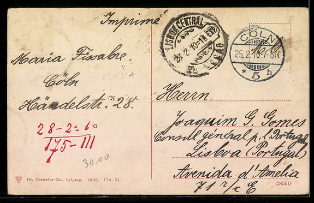 gelaufen 1910, Abriebspur li. oben, guter Zustand, guter Zustand