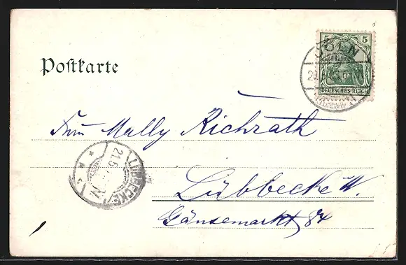 alte Ansichtskarte, gelaufen 1903, Eckknick li. unten, guter Zustand