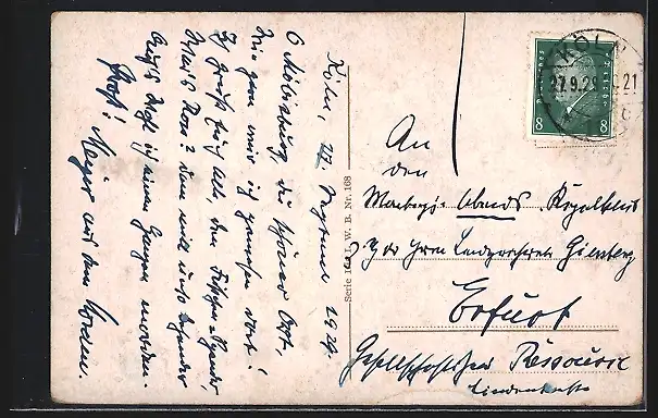 gelaufen 1929, Ecken bestoßen, guter Zustand